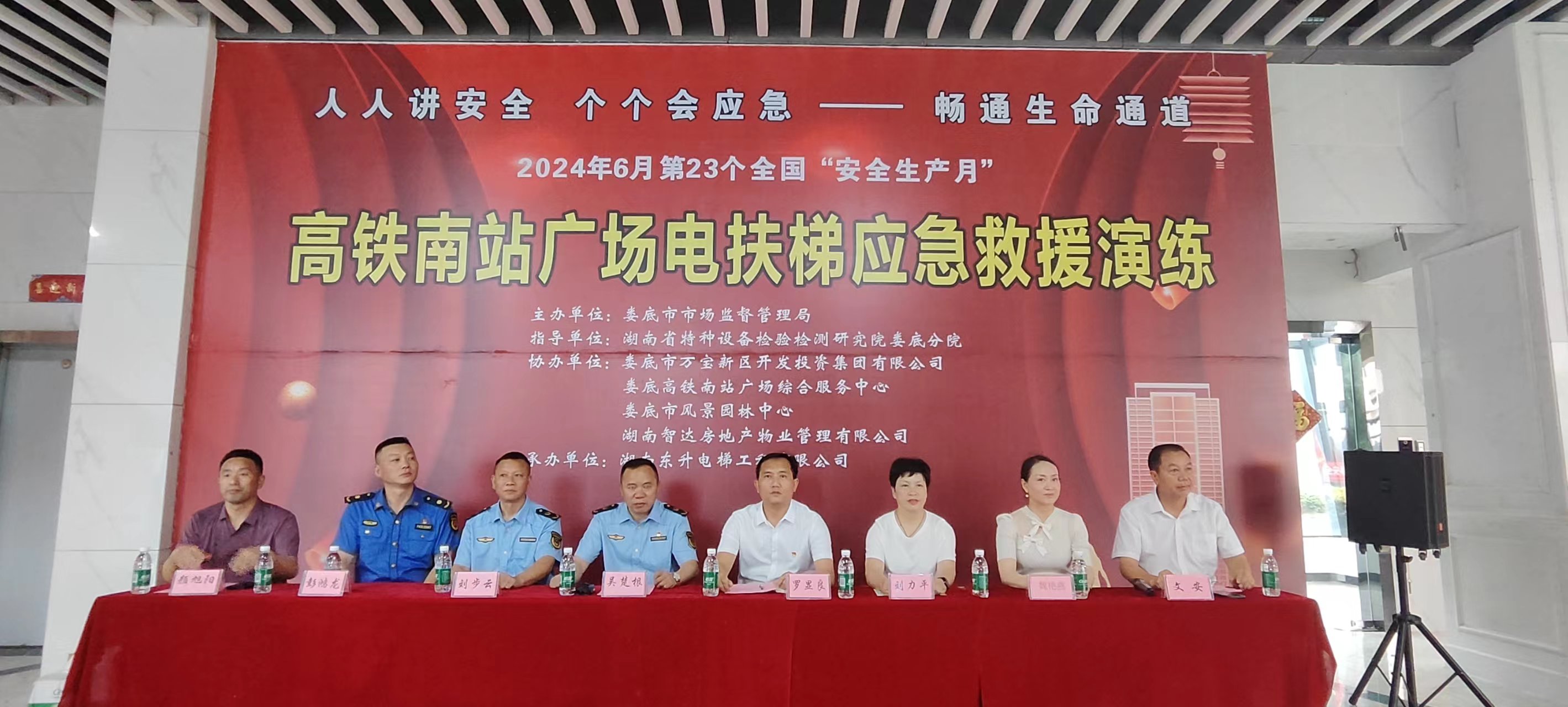 為增強安全生產(chǎn)意識,聚焦應對特種設(shè)備事故的快速反應和高效處置能力,6月17日上午10點,我市在高鐵南站廣場舉行電扶梯應急救援演練。本次活動由婁底市市場監(jiān)督管理局主辦,婁底市萬寶新區(qū)開發(fā)投資集團有限公司、婁底市高鐵南站廣場綜合服務中心、婁底市風景園林中心、湖南智達房地產(chǎn)物業(yè)管理有限公司協(xié)辦,湖南東升電梯工程有限公司承辦,湖南省特種設(shè)備檢驗檢測院婁底分院進行現(xiàn)場指導。